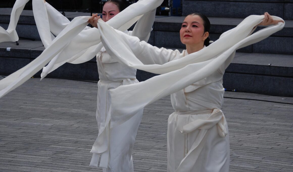 The choice of materials for costumes and gear is fundamental to successfully competing in dance fitness. Breathable fabrics should be a top priority, particularly those that wick moisture away from the body. Look for lightweight options like spandex blends, which offer comfort alongside flexibility. Stretchy materials will allow performers to move freely while executing various dance routines. Additionally, metallics or sequins can add sparkle and glam, enhancing the overall aesthetic. However, it’s essential to balance style with practicality; ensure that embellishments do not hinder movement. Evaluating the weight of costume designs is also critical. Heavier costumes can be cumbersome and may restrict agility. Therefore, lighter options that still deliver visual impact are ideal. Investigate stretch denim or lightweight mesh fabric for a cool effect. For feet, prioritize shoe materials that provide ample support and cushioning. Designs that include arch support can reduce fatigue during long performs. Lastly, test all materials for comfort and withstand performance demands to ensure optimal efficiency. Finding the perfect fabric balance is essential for ensuring performers can fully express themselves during competition.