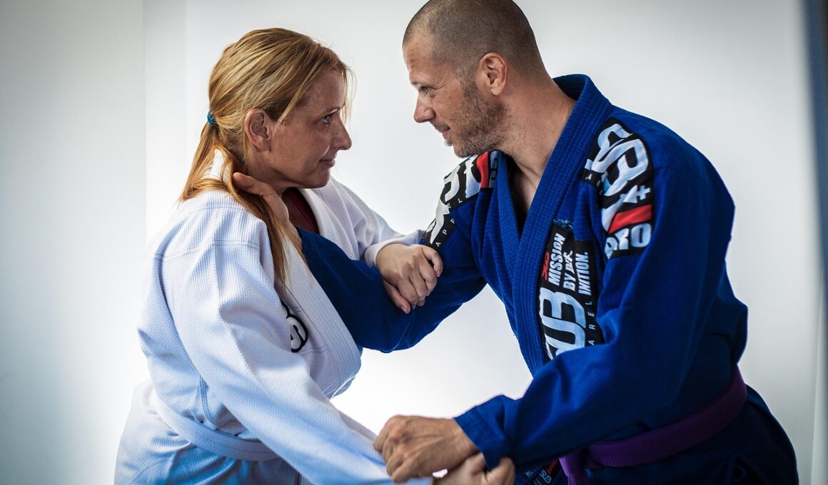 Another beneficial aspect of adapting Brazilian Jiu-Jitsu training is integrating cross-training methodologies. Incorporating elements from other martial arts and fitness disciplines can help enhance practitioners’ skills while also maintaining class interest. For example, integrating yoga for flexibility, strength training for overall conditioning, or wrestling for takedown techniques can provide students fresh perspectives on grappling arts. This approach not only keeps the sessions dynamic but also presents varying concept angles that a student may not have previously considered. Fostering an open-minded environment allows individuals to feel empowered in their learning journey, subsequently translating into increased confidence on the mat. It also enriches a student’s experience, creating meaningful relationships with varied styles. Additionally, emphasizing these cross-training components can help unite different age groups as they collaborate to enhance each other’s skills. Ultimately, gathering support from ones’ peers during training sessions builds both physical resilience and emotional well-being among participants, leading to a more constructive group atmosphere. Through methodical integration of various training elements, BJJ classes can thrive and adapt to the unique strengths of every individual.