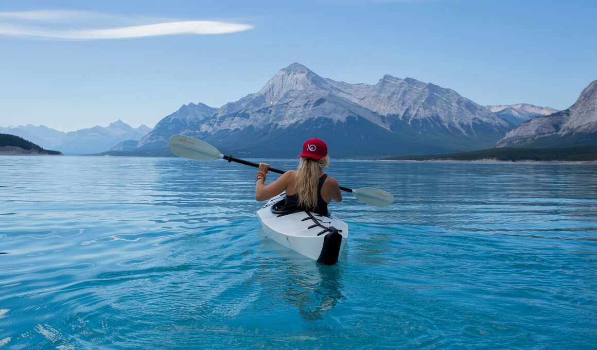 Engaging in outdoor activities offers numerous benefits for fitness and overall health. Kayaking, in particular, combines a thrilling adventure with a great workout. Imagine paddling through tranquil waters while simultaneously torching calories. It’s not just fun; it’s also effective for weight loss. To maximize your kayaking fitness journey, consider focusing on your technique. Proper paddling techniques will help you engage more muscle groups, enhancing caloric burn. Ensure that you maintain a strong posture to promote effective paddle strokes and prevent potential injuries. Additionally, hydration plays a crucial role during longer sessions on the water. Drink plenty of water to stay refreshed. Pair your kayaking workouts with a balanced diet to fuel your body adequately. It’s essential to include healthy proteins, complex carbohydrates, and healthy fats in your meals to support your energy needs and recovery. Likewise, consider tracking your kayak sessions. Using a smartwatch or app can help monitor your paddling intensity and duration, leading to better goal management. Don’t forget to plan your kayaking excursions according to weather conditions and water currents for safety and enjoyment.